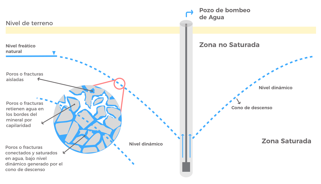 SQM extrae la salmuera a través de pozos de extracción ubicados en las zonas denominadas MOP y SOP. La operación de los pozos se define con base en el nivel del acuífero en los bordes del salar, considerando que no se produzca una alteración en el equilibrio de los sistemas sensibles ubicados en esta zona, evitando la generación de daño ambiental. El 100% de la salmuera utilizada en el proceso se encuentra contemplada en el monitoreo en línea entregando información continua del volumen extraído para cada uno de los denominados Puntos de Control Ambiental (PCA, ver definición en sección glosario).