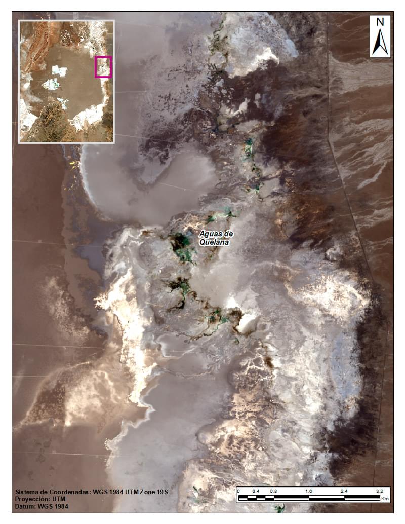 El Sistema Aguas de Quelana es un subconjunto del Sistema Vegetación Borde Este, se encuentra al margen Este del Salar de Atacama e incluye la Reserva Nacional Los Flamencos sector Aguas de Quelana. Está compuesto por un conjunto de cuerpos lagunares alineados en una disposición aproximada norte-sur, los que presentan un comportamiento errático, tanto en ubicación como en dimensión y continuidad espacial, mostrando una gran variabilidad.