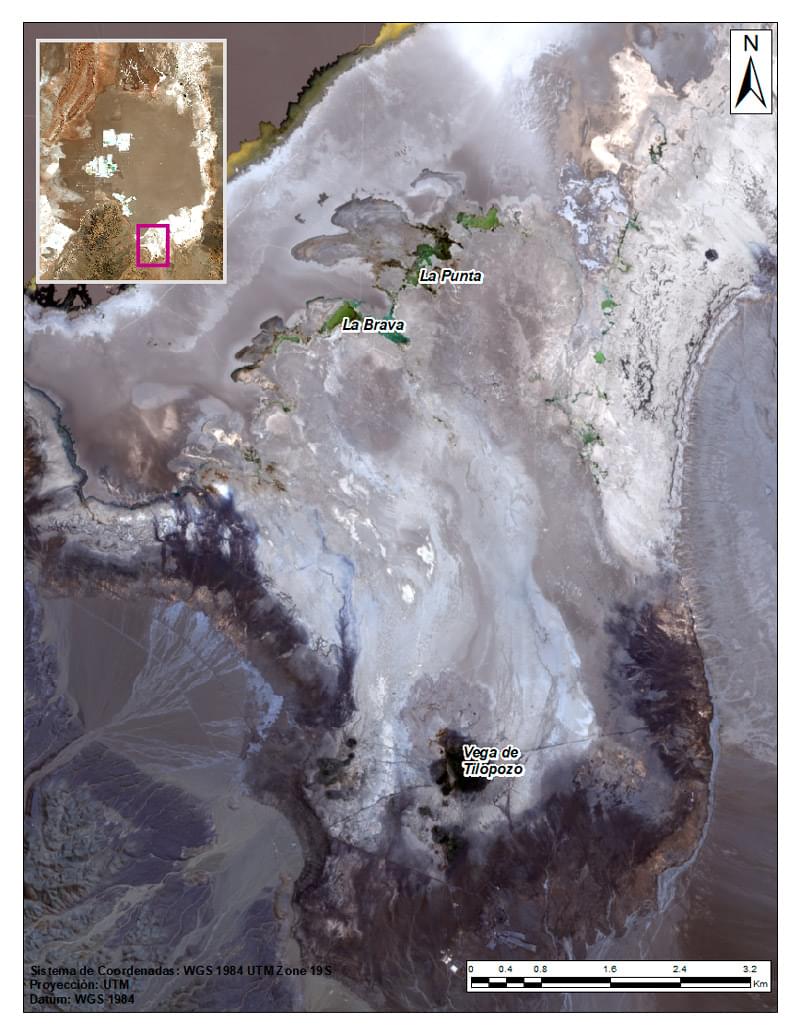 Este sistema se encuentra al sur del núcleo del Salar de Atacama, aproximadamente a 20 km de la zona productiva de SQM Salar, e incluye las lagunas La Punta y La Brava, y al sistema terminal del callejón Tilopozo. En este sector el nivel freático se encuentra muy cercano a la superficie, lo que favorece la presencia de un ecosistema tipo vegas.
