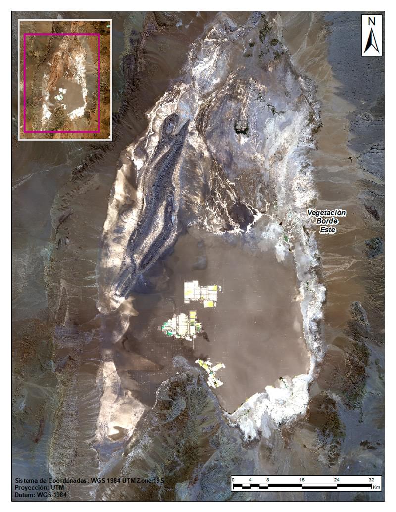 El núcleo del Salar corresponde al sector donde se ubican las faenas extractivas de salmuera. Posee una superficie aproximada de 1.100 km2, y está rodeado, en sus sectores norte, este y sureste, por una zona marginal de unos 2.000 km2 de extensión aproximadamente. En sectores locales dentro de la zona marginal se ubican los objetos de protección ambiental.