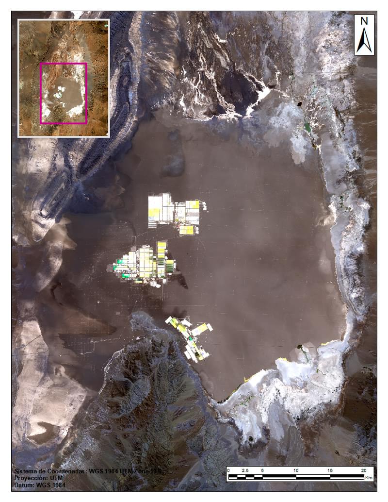Utilizando energía proveniente del sol, la salmuera extraída a través de los pozos es enviada a una serie de pozas de evaporación, en las cuales se produce la saturación de ciertas sales y su posterior precipitación. A través del seguimiento y control de los procesos de equilibrio fisicoquímico en las pozas, se fomenta la precipitación de sales ricas en potasio, las cuales son cosechadas y utilizadas en las plantas para producir Cloruro de Potasio y Sulfato de Potasio. Por otro lado, la salmuera de proceso se sigue concentrando en Litio al precipitar parte de los otros analitos y esta solución enriquecida en Litio con una concentración cercana al 6% es enviada a la planta ubicada en Antofagasta para su procesamiento y producción de Carbonato ye Hidróxido de Litio.