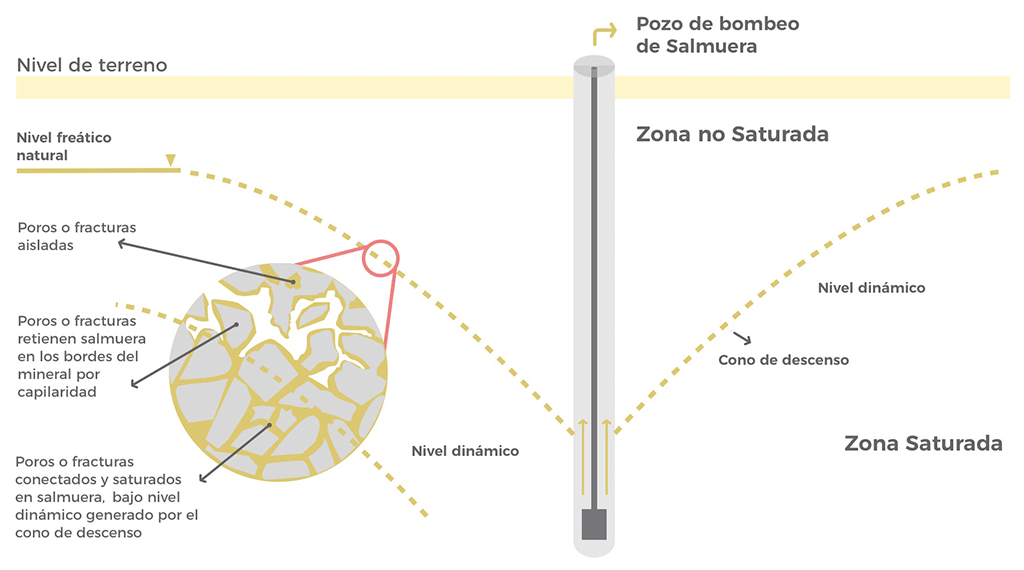 Importante considerar que la extracción efectiva de salmuera en el salar considera la reducción del volumen extraído desde los pozos de la reinyección que se realiza y se denomina en su conjunto Extracción Neta de salmuera (ver definición en sección glosario).